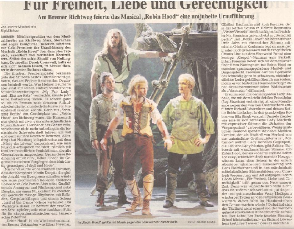 Kritiken zum Musical Robin Hood (Uraufführung) mit Daniela Ziegler als Königin Isabelle im Bremer Musical-Theater Winter 2005/2006 (Gastspiel im Deutschen Theater in München: 09.03.-02.04.2006) aus Weser-Kurier, That's Musical, weitere siehe offizielle Robin Hood-Seite [seit Ende März 2007 erhältlich: Robin Hood auf DVD! (Shop)]